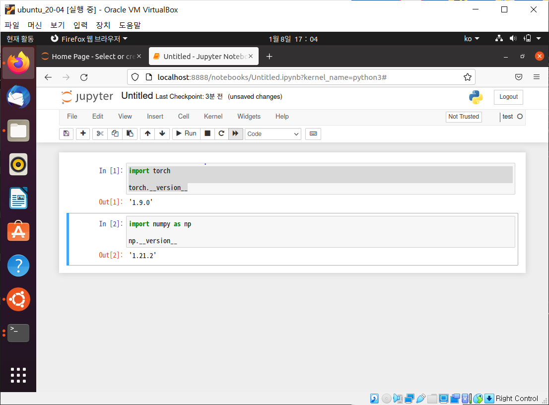필자는 필요한 라이브러리인 torch 와 numpy 를 불러와서 버전을 확인해보았다.