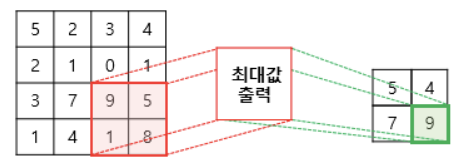 * 특성 맵을 다운샘플링하여 특성 맵의 크기를 줄이는 연산